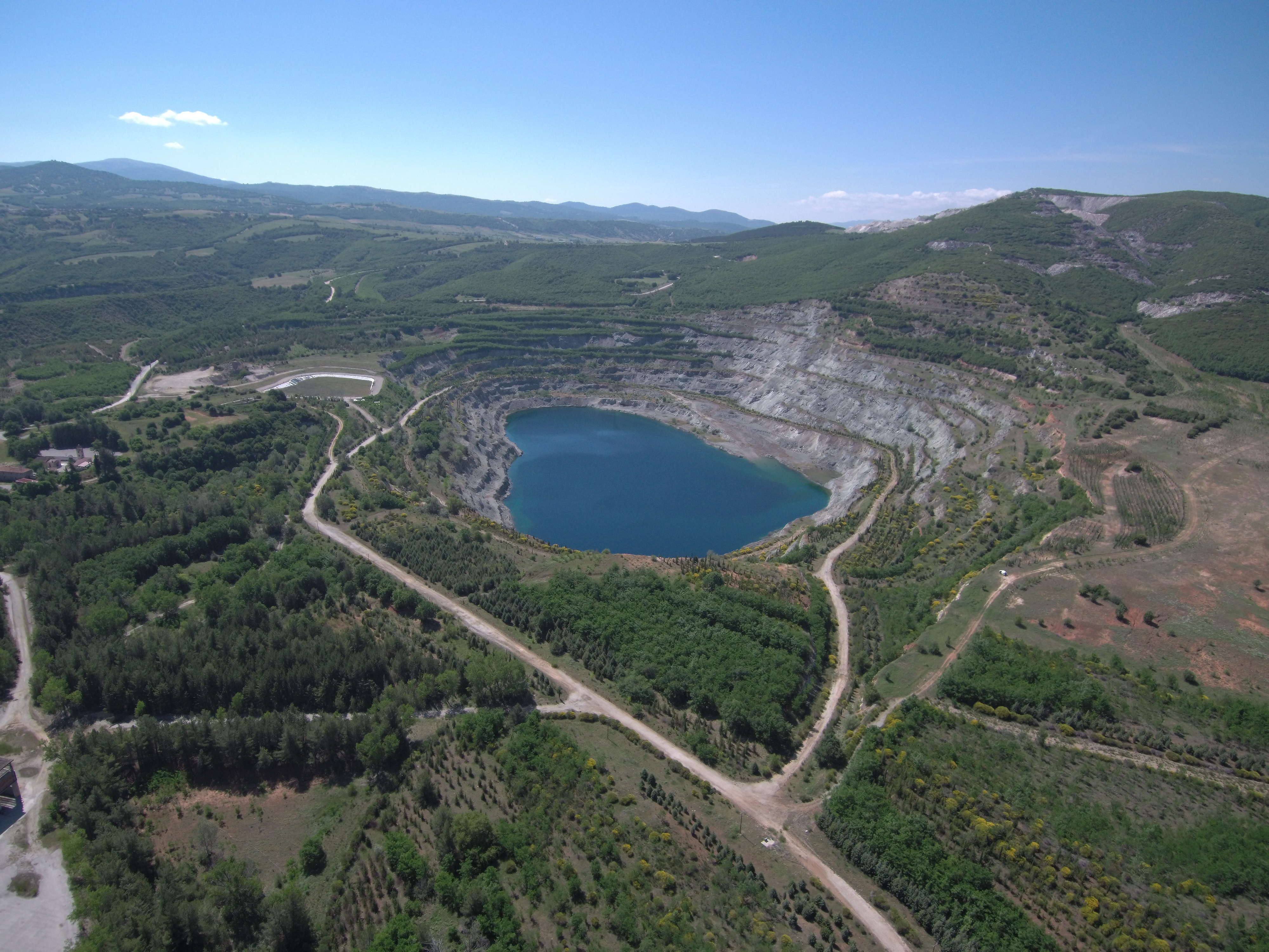 • Το μεταλλείο, που καταλαμβάνει έκταση 335 στρεμμάτων και βρίσκεται στο νότιο τμήμα του οικοπέδου. Στο κεντρικό τμήμα του έχει σχηματιστεί λίμνη 125,4 στρεμμάτων (απόλυτο υψόμετρο νερού 497,60 m.).