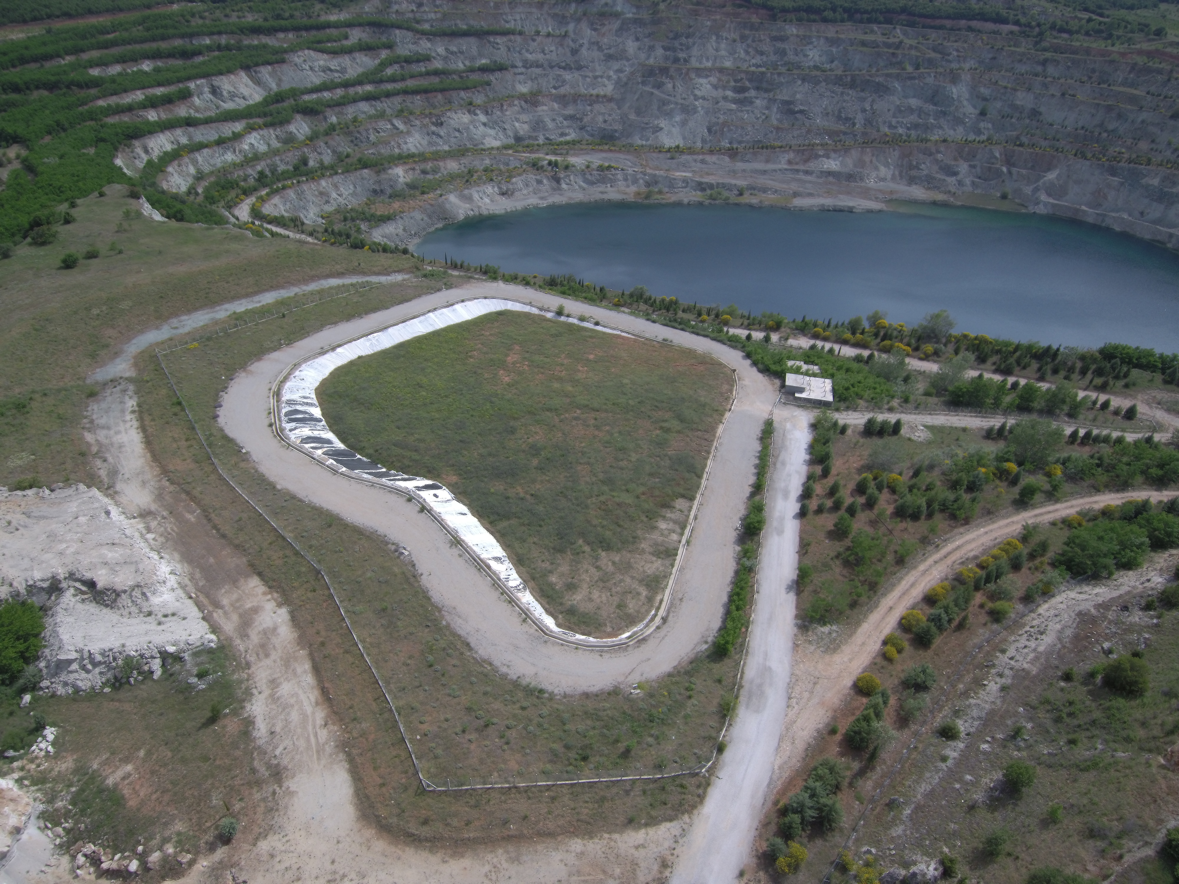 • Το χώρο των αποθέσεων στείρων τόσο του μεταλλείου όσο και του εργοστασίου καταλαμβάνοντας έκταση 532 στρ. εκ των οποίων τα 220 στρ. αφορούν τις λεπτόκοκκες αποθέσεις του εργοστασίου (tailings) στο βόρειο και ανατολικό άκρο του οικοπέδου.